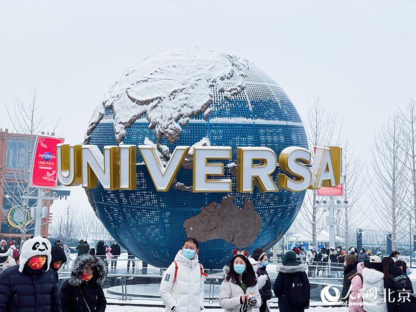 在紛紛揚揚的雪花中,北京環(huán)球度假區(qū)開啟了首個“環(huán)球中國年”季節(jié)性主題活動。人民網(wǎng) 董兆瑞攝