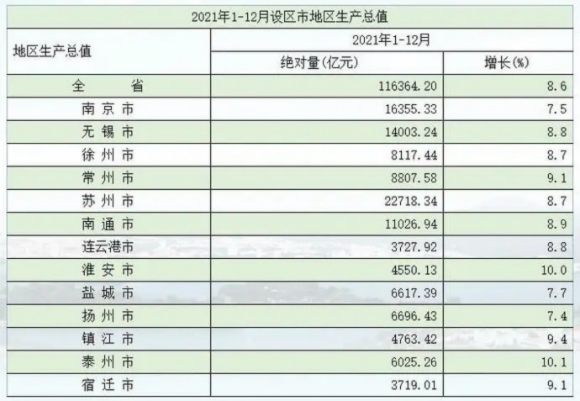 從目前國內(nèi)已公布 2021年經(jīng)濟數(shù)據(jù)的省市來看,去年經(jīng)濟總量前五名基本確定,分別為廣東、江蘇、山東、浙江、河南。江蘇以116364.2億元位列第二,邁上11萬億元新臺階。根據(jù)地區(qū)生產(chǎn)總值統(tǒng)一核算結果,2021年江蘇全省實現(xiàn)生產(chǎn)總值116364.2億元,按不變價格計算,比上年增長8.6%,兩年平均增長6.1%。