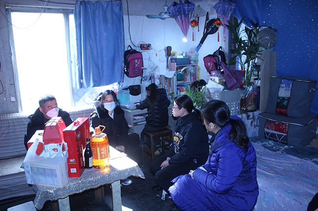 2022年1月24日,年關(guān)將至,氣溫驟降。濟(jì)南市中區(qū)人民法院少審?fù)サ姆ü賯冊诶罱ラL的帶領(lǐng)下,踩著厚厚的積雪,提著滿滿的春節(jié)年貨和生活、學(xué)習(xí)用品,來到轄區(qū)內(nèi)一間不足20平方米的簡易出租房內(nèi),看望了從大山深處來濟(jì)南生活的秦女士(化名)和她的三個女兒。 6年里的每個春節(jié)前夕,他們都會來看望這個因“案”結(jié)緣,心中時常牽掛的小姐妹家。