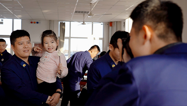 室外寒氣襲人,室內溫暖四溢,其樂融融,消防救援人員及家屬在消防站貼窗花、掛燈籠……參觀中,孩子們稚嫩的聲音回蕩在消防站中,增添了一絲童趣;包水餃環(huán)節(jié),大家分工協作,你搟皮,我包餡,氣氛和諧,洋溢著“家”的味道,讓這個冬天情意滿滿。吃餃子、話家常,應和著這溫暖的氛圍,大家圍坐在一起感受著濃濃的年味,昔日嚴肅的食堂充斥著歡聲笑語。在場一位消防救援人員的家屬表示:“孩子爸爸平時回家少,工作環(huán)境又比較危險,作為家屬我們能做的就是全力支持他們的工作,今天來隊參觀對他平時的工作也多了一分了解,以后我會更加支持他的!”