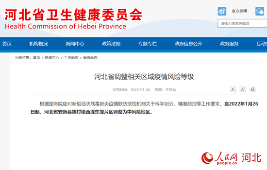 河北省調(diào)整區(qū)域疫情風(fēng)險(xiǎn)等級(jí) 安新縣1地為中風(fēng)險(xiǎn)地區(qū)