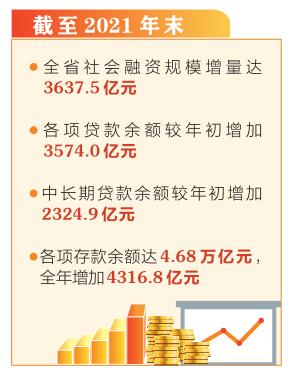 截至2021年末,我省社會融資規(guī)模存量5.11萬億元,全年社會融資規(guī)模增量達(dá)3637.5億元。從各項(xiàng)貸款來看,截至2021年末,全省金融機(jī)構(gòu)本外幣各項(xiàng)貸款余額3.42萬億元,較年初增加3574.0億元,同比多增1052.5億元,增量創(chuàng)下新高。