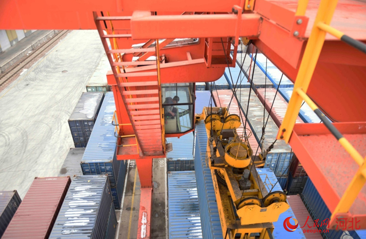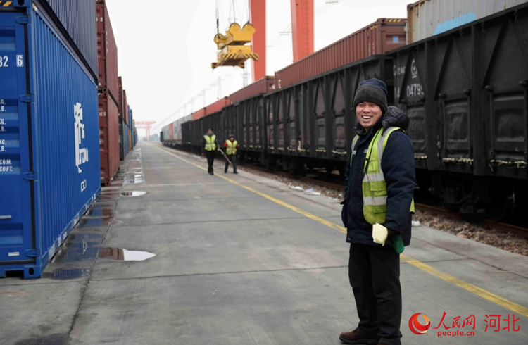 人民網(wǎng)石家莊2月2日電 (祝龍超)“再往前一點,右邊一點,好的。”2月2日9點,在地面作業(yè)人員的配合下,坐在30多米龍門吊駕駛室的滑恒旭穩(wěn)穩(wěn)地操作著龍門吊車將一個20多噸的集裝箱放到了貨運專列上。