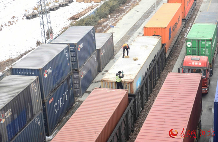 春節(jié)期間,石家莊國際陸港一片繁忙。 人民網(wǎng) 祝龍超攝