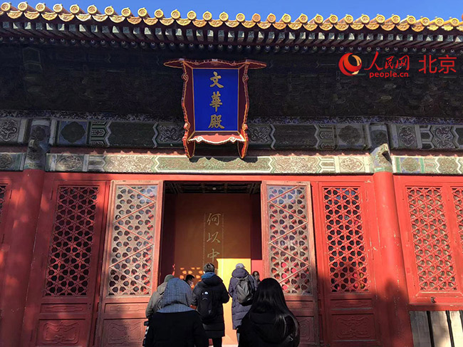 文華殿北側(cè)的文淵閣,作為此次展覽最后一件“展品”,與文華殿展廳結(jié)尾處的《四庫(kù)全書(shū)》(影印本)遙相呼應(yīng)。人民網(wǎng)記者 鮑聰穎 攝