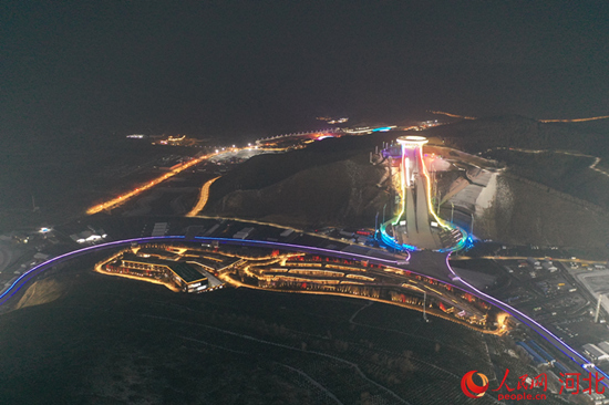 張家口賽區(qū)國(guó)家跳臺(tái)滑雪中心夜景。 馮波攝