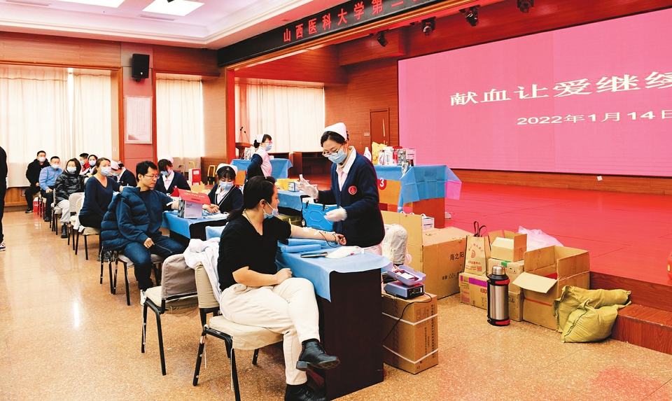 近日,山西醫(yī)科大學(xué)第二醫(yī)院一年一次的義務(wù)獻(xiàn)血“獻(xiàn)血讓愛繼續(xù)跳動”公益活動在該院影像樓進(jìn)行,醫(yī)務(wù)人員、職能部門和后勤工作人員共264人參與。大家依次填表、體檢、化驗、采血,積極獻(xiàn)出一份愛心,以實際行動踐行對生命的關(guān)愛,體現(xiàn)了強(qiáng)烈的社會責(zé)任感。(周慧芳 孟亮圖/文)
