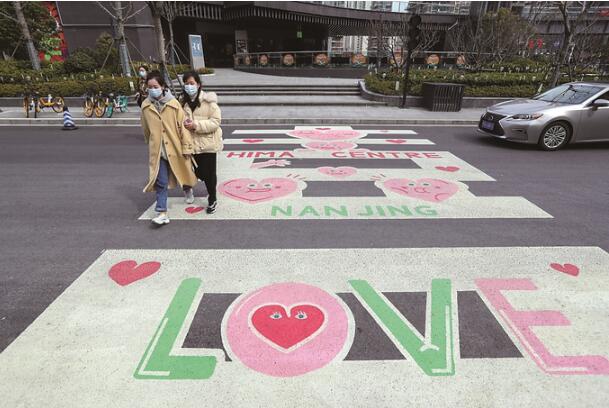 南京雨花臺區(qū)設置“愛心斑馬線”引人注目