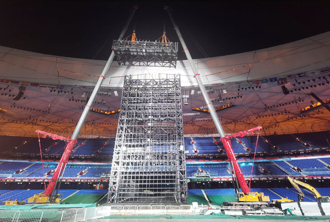矗立在“鳥巢”東側(cè)跑道中心區(qū)域的巨幅屏幕被稱為“冰瀑”,由鋼結(jié)構(gòu)和LED顯示屏組成,在開幕式上呈現(xiàn)了“黃河之水天上來”的震撼效果。拆除大屏幕主體鋼結(jié)構(gòu)成為“鳥巢”轉(zhuǎn)場的關(guān)鍵。