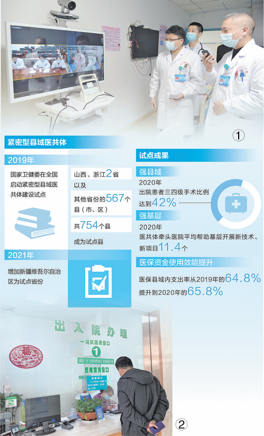 近日,國(guó)家衛(wèi)健委印發(fā)《醫(yī)療機(jī)構(gòu)設(shè)置規(guī)劃指導(dǎo)原則(2021—2025年)》,要求按照縣鄉(xiāng)一體化、鄉(xiāng)村一體化原則積極發(fā)展緊密型縣域醫(yī)共體。2019年,國(guó)家衛(wèi)健委在全國(guó)啟動(dòng)緊密型縣域醫(yī)共體建設(shè)試點(diǎn)。目前全國(guó)已有535個(gè)縣建成縣、鄉(xiāng)、村三級(jí)聯(lián)動(dòng)的緊密型縣域醫(yī)共體,試點(diǎn)縣醫(yī)療服務(wù)效能提高,縣域內(nèi)就診率超90%。