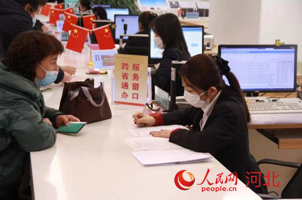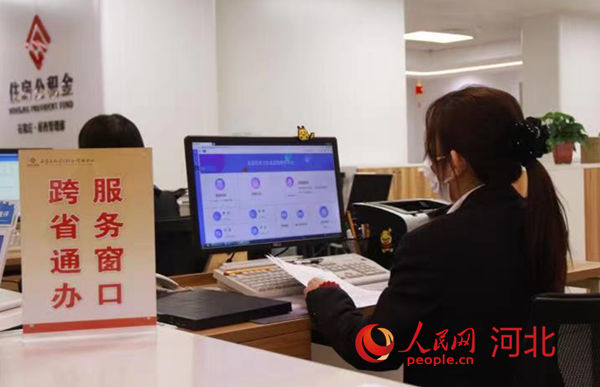 石家莊住房公積金管理中心橋西管理部工作人員在辦理“跨省通辦”相關(guān)業(yè)務(wù)。 王翠玉攝