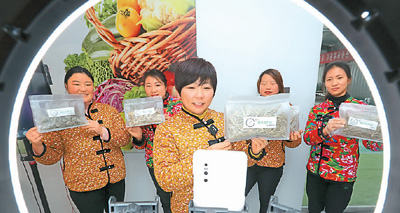 安徽省亳州市蒙城縣雙鹿村一家種植合作社的社員在學(xué)習(xí)電商銷售技巧。