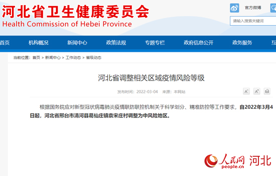 河北省調(diào)整相關(guān)區(qū)域疫情風(fēng)險(xiǎn)等級 清河縣1地調(diào)整為中風(fēng)險(xiǎn)地區(qū)
