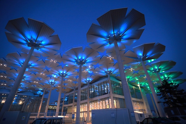 延慶冬殘奧頒獎(jiǎng)廣場前花傘被點(diǎn)亮。張慶玉攝