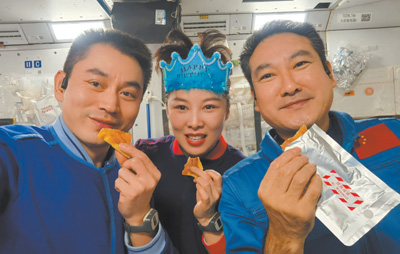 執(zhí)行迄今時(shí)間最長(zhǎng)一次太空飛行,神舟十三號(hào)航天員趕上了第一次在太空跨年,第一次在空間站過(guò)春節(jié)。在地面團(tuán)隊(duì)的精心保障下,航天員們除夕夜為人們送上來(lái)自太空的新年祝福,在空間站度過(guò)了年味十足、充實(shí)精彩的虎年春節(jié)。從太空出艙、“天宮課堂”開(kāi)講,到手控遙操作完成貨運(yùn)飛船與空間站組合體交會(huì)對(duì)接試驗(yàn),從中國(guó)女航天員首次太空漫步,到3名航天員太空飛行累計(jì)超100天,太空“出差”期間,航天員們開(kāi)展了一系列空間科學(xué)實(shí)驗(yàn)和技術(shù)試驗(yàn),刷新了一個(gè)又一個(gè)中國(guó)航天紀(jì)錄,為中國(guó)空間站正式建成打下堅(jiān)實(shí)基礎(chǔ)。