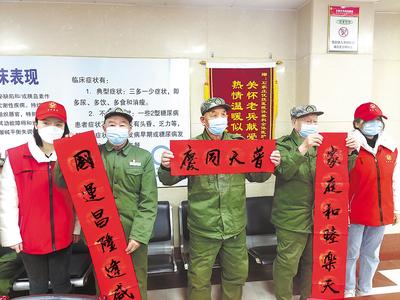 石家莊市正定縣“常山老兵”退役軍人志愿服務(wù)隊到市榮軍優(yōu)撫醫(yī)院開展“賀新春、獻愛心、送祝?!敝驹阜?wù)活動。 河北省退役軍人事務(wù)廳供圖