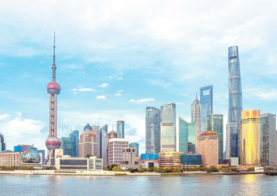 2021年4月25日,從上海外灘眺望陸家嘴,東方明珠塔、上海中心大廈等地標建筑在藍天白云映襯下,組成優(yōu)美的城市風景。
