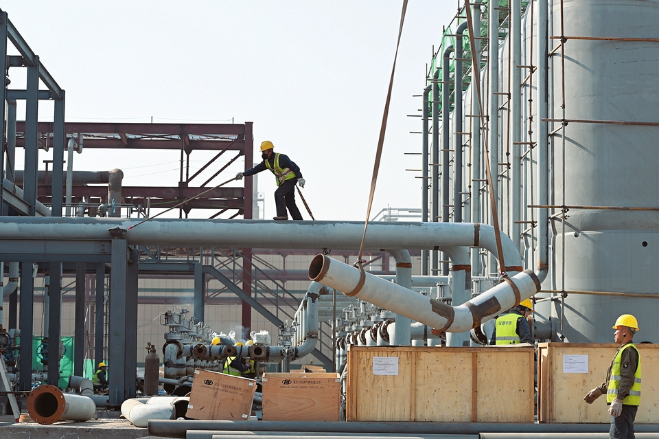 呂梁市圍繞氫能“制、儲(chǔ)、運(yùn)、研、應(yīng)用”加快構(gòu)建全產(chǎn)業(yè)鏈集群發(fā)展格局,強(qiáng)力推進(jìn)“一體兩翼、三港四鏈”氫能發(fā)展戰(zhàn)略,呂梁市氫能產(chǎn)業(yè)呈現(xiàn)動(dòng)能加速集聚態(tài)勢(shì)。圖為3月16日,鵬灣氫港氫能產(chǎn)業(yè)園施工現(xiàn)場(chǎng)。(劉亮亮攝)