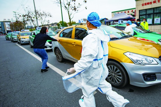 3月19日,金華金東區(qū)東孝街道核酸檢測點(diǎn),“的姐”方秋丹載著醫(yī)護(hù)人員快速轉(zhuǎn)運(yùn)剛剛檢測的核酸樣本。這幾天,東孝街道各個核酸檢測現(xiàn)場,一批又一批轉(zhuǎn)運(yùn)司機(jī)配合工作人員爭分奪秒轉(zhuǎn)運(yùn)核酸檢測樣本,與時間賽跑,為核酸檢測工作保駕護(hù)航。(胡肖飛)