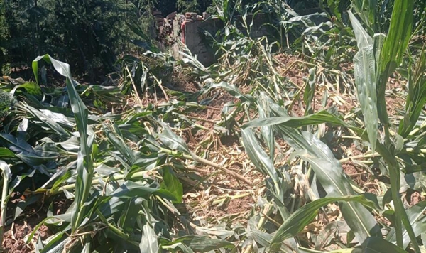 南京老山地區(qū)農(nóng)民的玉米地被野豬破壞的場景。浦口區(qū)湯泉街道農(nóng)業(yè)辦供圖