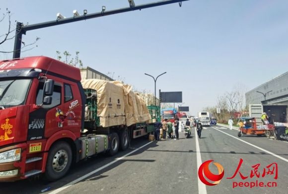 通農(nóng)物流臨時(shí)交易區(qū)內(nèi),一輛輛卡車運(yùn)來各類新鮮的蔬菜。人民網(wǎng)記者 王繼亮攝