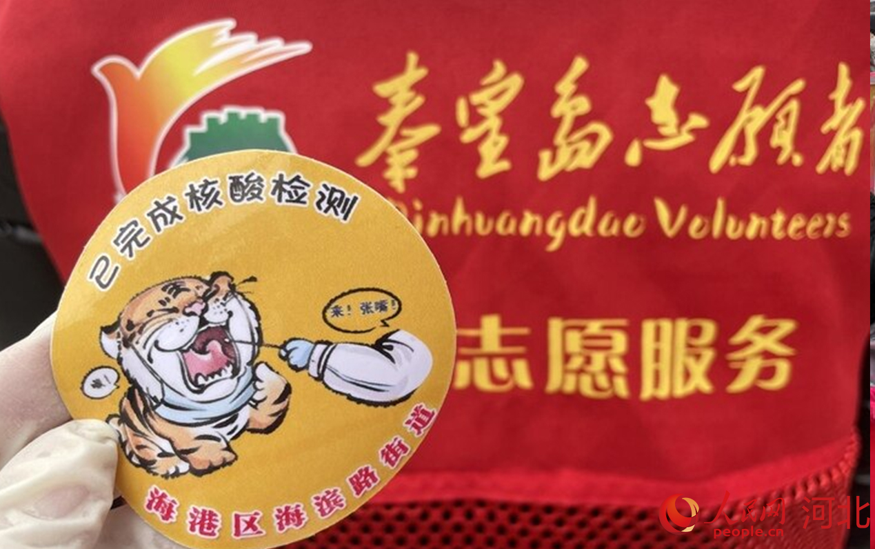 為了提高孩子們參與配合意識,海濱路街道特意制作了“兒童專屬獎勵貼紙”,發(fā)給完成檢測的孩子。貼紙上卡通小老虎檢測核酸的樣子很可愛,孩子們領到貼紙,都一臉自豪地跟志愿者互相豎大拇指。