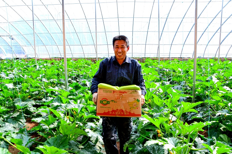 掀開(kāi)大棚門(mén)簾,熱氣撲面而來(lái)。眼前,一壟壟西葫蘆藤蔓郁郁蔥蔥,金黃色花朵上結(jié)出一個(gè)個(gè)西葫蘆,瓜條順直、鮮嫩翠綠。大棚負(fù)責(zé)人任國(guó)喜樂(lè)呵呵地說(shuō):“這里建成后一刻也沒(méi)閑置,及時(shí)種上西葫蘆、西紅柿。眼下第一批西葫蘆已經(jīng)上市,價(jià)格不錯(cuò)。等到生長(zhǎng)旺季,畝產(chǎn)5000斤不成問(wèn)題。”