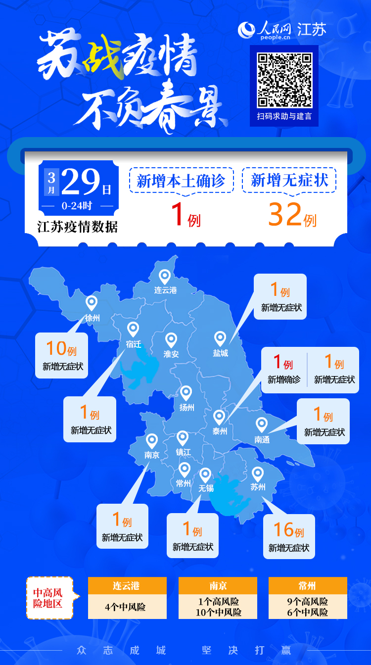 3月29日江蘇新增本土確診病例1例 本土無癥狀感染者32例