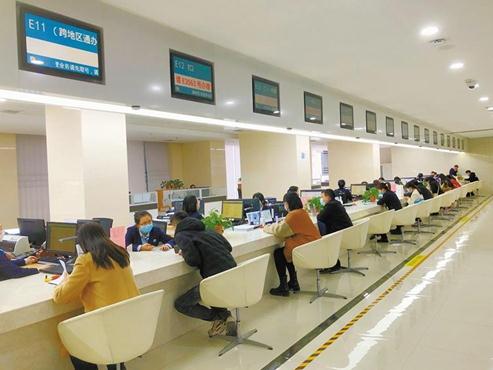 3月1日,市民在西安市碑林區(qū)市民中心跨地區(qū)通辦窗口辦理業(yè)務(wù)。