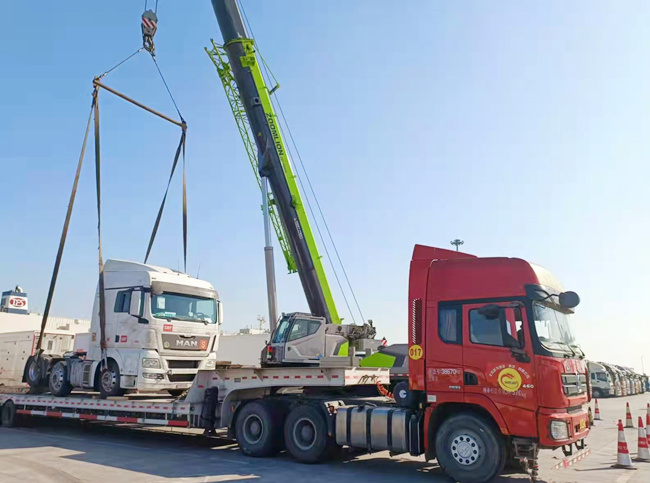 救援運輸?shù)诌_天津港卸車。 祥龍物流集團供圖