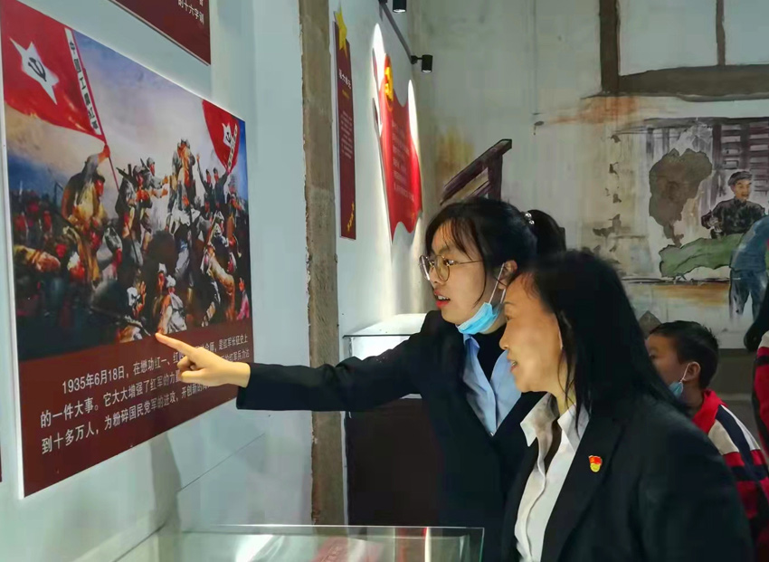 干部群眾在紀(jì)念館中學(xué)習(xí)參觀紅軍事跡。蒼溪縣委宣傳部供圖