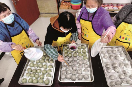 4月1日,嘉興市秀洲區(qū)新塍鎮(zhèn)虹橋社區(qū)請(qǐng)來(lái)轄區(qū)的幾位巧手奶奶一起做青團(tuán),送到志愿者手中,讓他們?cè)凇翱挂摺币痪€也能吃上熱乎乎的時(shí)令美食。(馮玉坤)