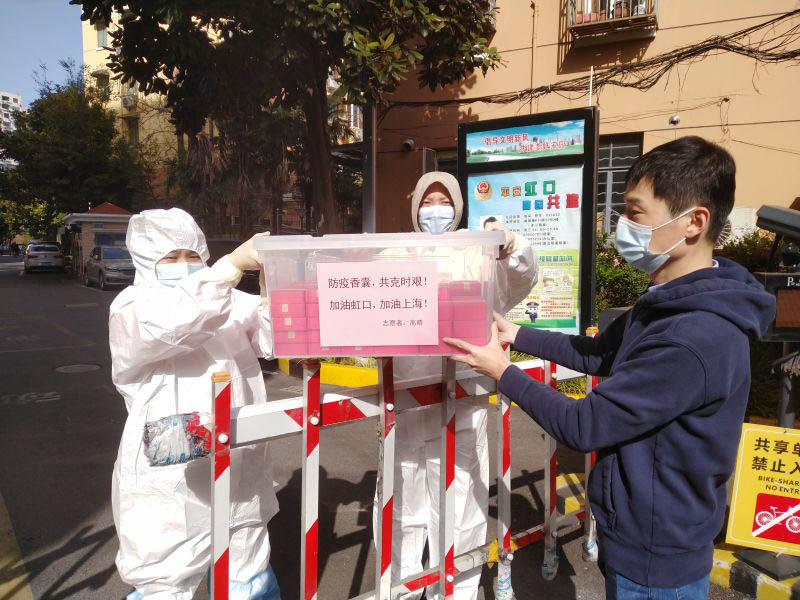 人民網(wǎng)上海3月31日電 (唐小麗、馬作鵬)“這些避疫香囊是我的一點(diǎn)心意。”3月30日下午,高晴將她自制的100多只避疫香囊,轉(zhuǎn)送給虹口區(qū)曲陽(yáng)路街道赤峰二小區(qū)正在抗疫的志愿者們。