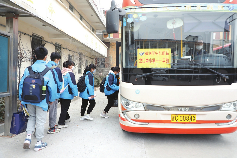 2013年,陽泉市平定縣實行交通惠民“暖心工程”,開通了免費接送寄宿制學(xué)生專用車,每周五下午到校接送學(xué)生回家,周一早晨再接送他們安全返校。截至目前,平定公交公司共開通接送寄宿生專線72條,投入運營車輛95臺,覆蓋全縣10個鄉(xiāng)(鎮(zhèn))的202個村莊、31所學(xué)校、2600余名寄宿制學(xué)生。圖為近日,該縣岔口中學(xué)操場上,分散居住在十里八鄉(xiāng)的寄宿制學(xué)生正準(zhǔn)備乘車回家。(張春林?jǐn)z)