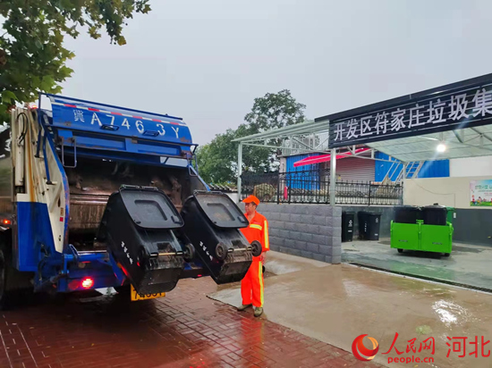 一大清早,在石家莊市鹿泉經濟開發(fā)區(qū)符家莊村,保潔員馮琴芳正和同事們一起入戶收集生活垃圾,電動收集車上四個垃圾桶裝滿后,保潔員將垃圾統(tǒng)一運送到村里的垃圾集中分類點。