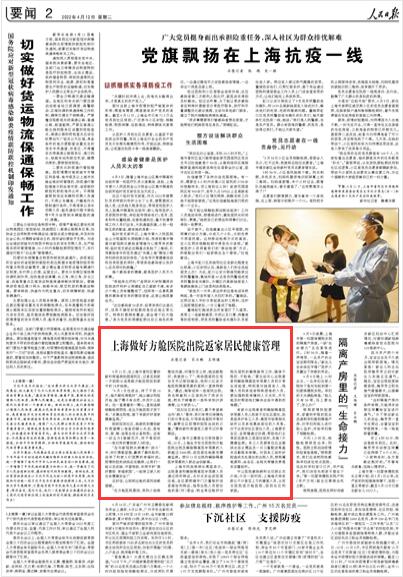 人民日?qǐng)?bào):上海做好方艙醫(yī)院出院返家居民健康管理