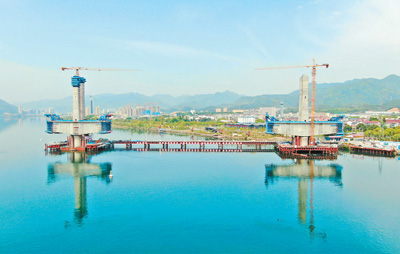 杭衢鐵路建德段新安江特大橋主塔成功封頂