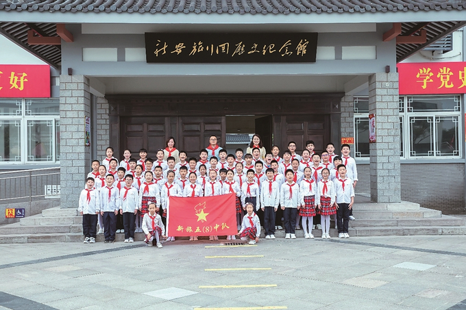 如今,歷史交由新時(shí)代的青少年來書寫。作為新安旅行團(tuán)的母校,新安小學(xué)學(xué)生們?cè)诙δ咳局行纬勺约旱木褡鴺?biāo)。學(xué)校不僅成立新旅藝術(shù)團(tuán)、紅領(lǐng)巾新旅研究院、教師新旅研學(xué)中心,深入挖掘和學(xué)習(xí)新旅紅色文化,還定期組織“小好漢”宣講員深入班級(jí)、家庭、社區(qū)、鄉(xiāng)村,廣泛宣講新旅故事。