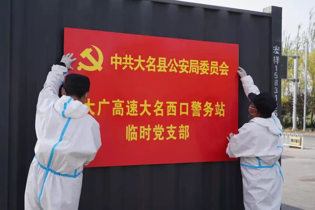 為加強(qiáng)疫情防控,大名公安充分發(fā)揮基層黨支部的戰(zhàn)斗堡壘作用和黨員干部先鋒模范作用,在一線設(shè)立臨時黨支部,做到關(guān)鍵時刻有組織在,關(guān)鍵崗位有黨員在?!芭R時黨支部的成立,既是廣大黨員沖鋒在前的‘催征鼓’,也是全體民警抗疫護(hù)民的‘作戰(zhàn)令’?!贝竺h公安局政委李軍輝說。