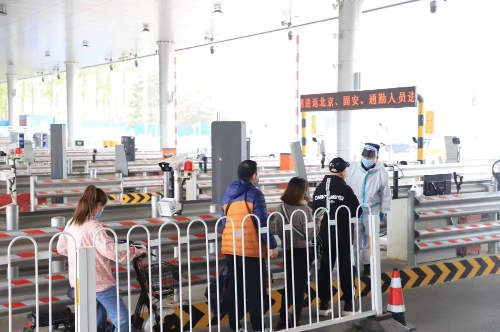 “根據(jù)疫情防控工作,4月11日零時起,固安縣通勤人員恢復(fù)進(jìn)返北京、固安。目前,堅持非通勤人員非必要不進(jìn)京,如因重大疾病等極特殊原因確需進(jìn)京的人員,需出示相應(yīng)證明后進(jìn)京,并嚴(yán)格執(zhí)行北京市疫情防控政策?!惫贪部h辛立村公安檢查站站長徐立說。