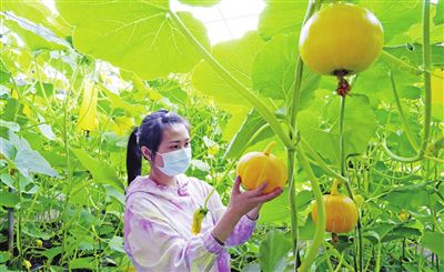 鄉(xiāng)村“采摘游”成為市民娛樂休閑的新選擇。日前,位于北辰區(qū)雙街鎮(zhèn)的農(nóng)業(yè)產(chǎn)業(yè)園果蔬采摘園中,金絲南瓜已進(jìn)入成熟期,吸引市民前來采摘。(記者 孫立偉 攝)
