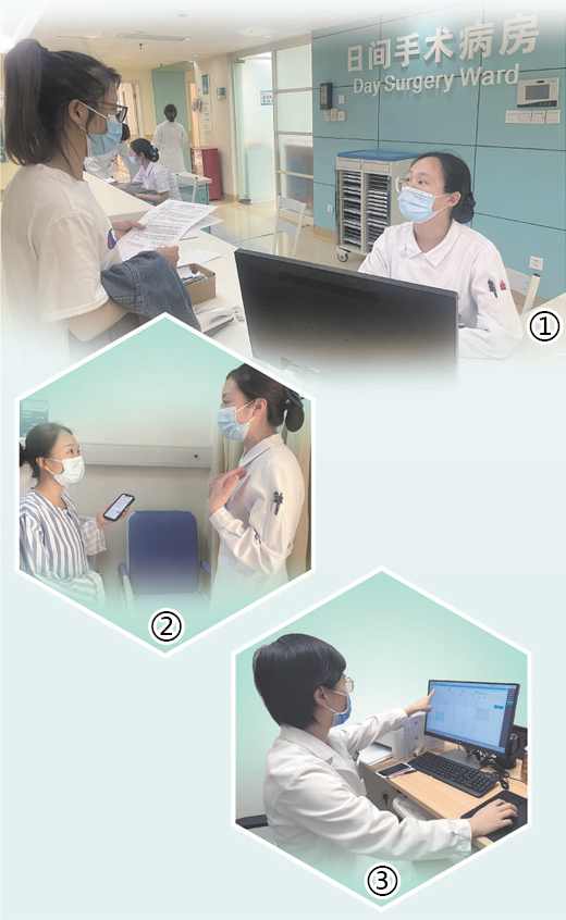 圖①:華西醫(yī)院日間手術(shù)病房,患者在辦理入院手續(xù)。