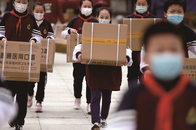 近日,嘉興秀洲一學(xué)校的愛(ài)心家長(zhǎng),為學(xué)校捐贈(zèng)了5萬(wàn)只口罩、七八百瓶洗手液和50多把額溫槍,助力學(xué)校疫情防控工作,筑牢安全防線。(馮玉坤)