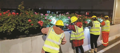 “結(jié)合常規(guī)巡查,新增加負(fù)責(zé)人、管理員、班組三級(jí)巡查模式,通過(guò)車(chē)巡看整體、人巡觀細(xì)節(jié),檢查市管高架綠化全域路線,分別做到每月、每半月、每?jī)商煲淮稳采w,對(duì)于高架主線和重點(diǎn)匝道做到每天巡查?!焙贾菔谐枪芫质姓行南嚓P(guān)負(fù)責(zé)人介紹,2022年的“高架花廊”巡查主要以綠化長(zhǎng)勢(shì)、灌溉情況、病蟲(chóng)害、排水設(shè)施滲漏等內(nèi)容為主,對(duì)隱患問(wèn)題第一時(shí)間發(fā)現(xiàn),第一時(shí)間處理。