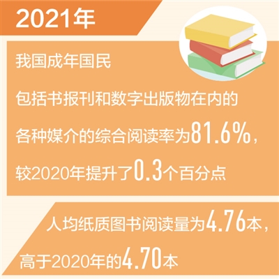 2021年我國(guó)成年國(guó)民綜合閱讀率為81.6%(新數(shù)據(jù) 新看點(diǎn))
