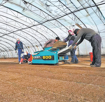 4月14日,吉林省各市州實(shí)現(xiàn)疫情防控社會(huì)面清零目標(biāo)。春耕時(shí)節(jié),全省堅(jiān)持“兩手抓”,疫情防控不松勁,農(nóng)業(yè)生產(chǎn)不誤時(shí)。圖為龍井市智新鎮(zhèn)村民通過(guò)軌道車等設(shè)備進(jìn)行水稻育秧作業(yè)。