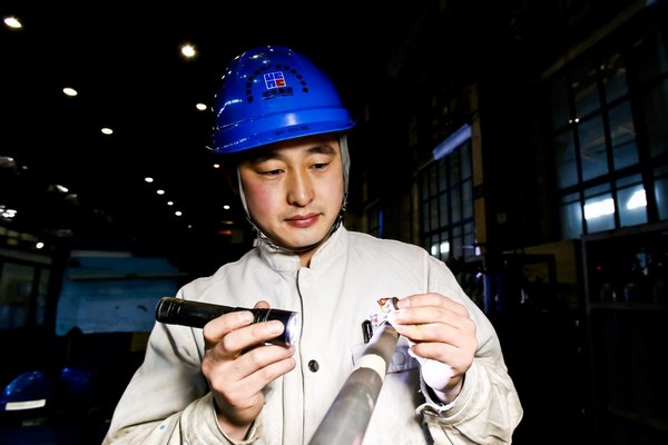 焊接工作環(huán)境比較艱苦,很多重要技術(shù)攻關(guān)中最難、最累的活孫柏慧都搶著干。2017年初,中廣核德令哈項目換熱器在孫柏慧所在分廠加工。由于是首臺光熱發(fā)電項目,在生產(chǎn)過程中存在很多困難和問題,而孫柏慧分擔(dān)了其中焊接難度最大、最艱苦的“仰焊”工作。為了搶進度,他從農(nóng)歷大年初五至四月末沒有給自己放過一個完整的假期,最終提前完成蒸發(fā)器殼體與管系錐殼的全位置焊接工作,為產(chǎn)品順利發(fā)貨奠定了基礎(chǔ)。中廣核德令哈項目的成功讓哈電集團汽輪機公司成為國內(nèi)首個擁有商業(yè)化光熱電站油水換熱器業(yè)績的企業(yè)。
