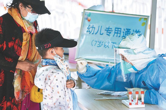 昨天(5月7日),朝陽區(qū)啟動新一輪大規(guī)模核酸檢測。為方便居民進行核酸采樣,減少交叉幾率,朝陽區(qū)小關街道奧林匹克文化廣場核酸檢測點設置“幼兒專用通道”,專為7歲以下兒童提供核酸檢測服務。本報記者 程功攝