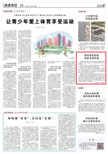 人民日報刊發(fā)連云港讀者來信:激光筆有危險 豈能當(dāng)成玩具
