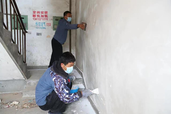 樓梯間粉刷、垃圾廣告清理、違規(guī)建筑拆除……5月10日,順平縣切削液廠南綜合樓小區(qū)里,老舊小區(qū)改造工程正如火如荼地開(kāi)展。